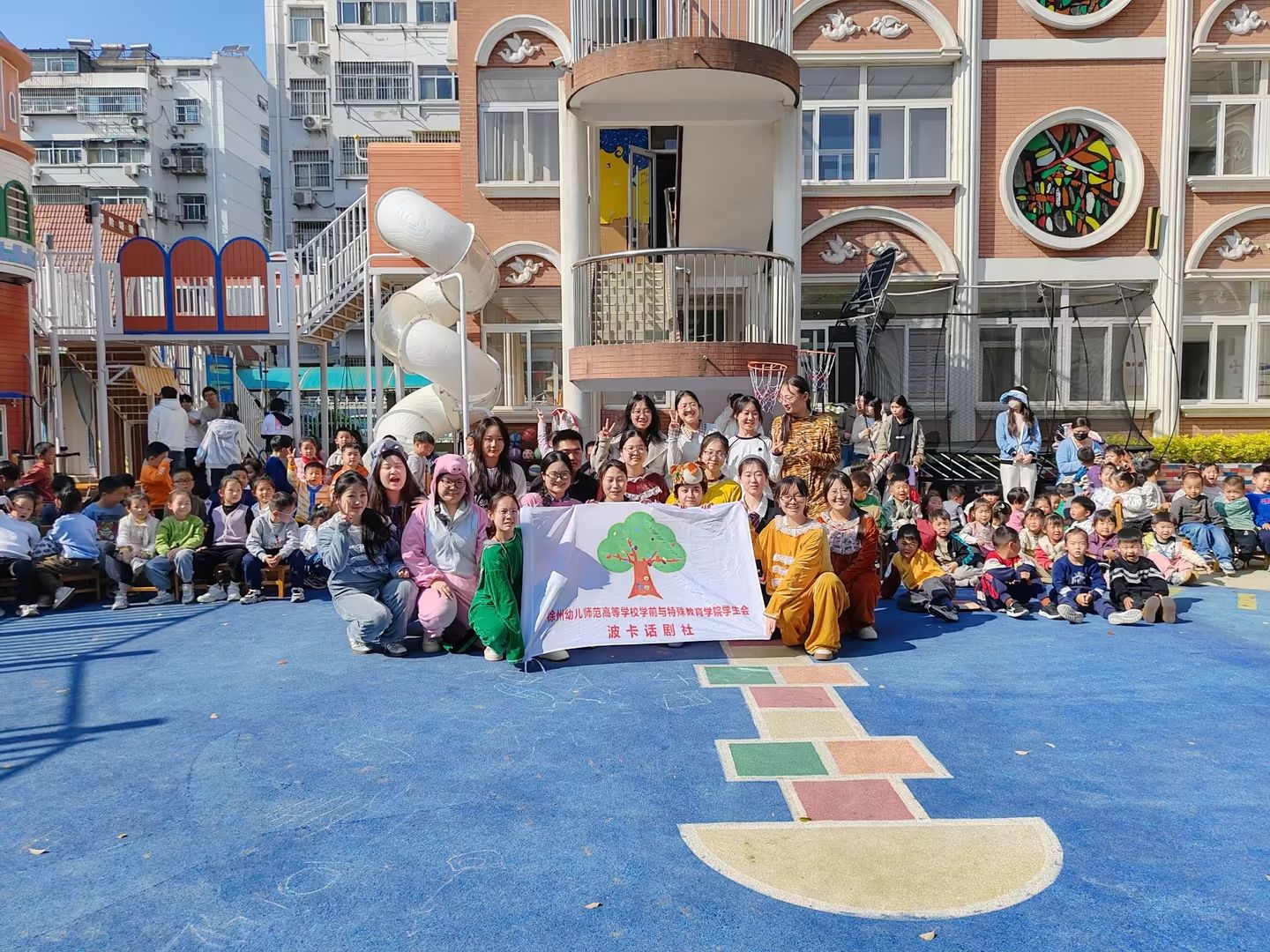 4月10日下午,应徐幼英伦城堡幼儿园邀请,我院“波卡”话剧社在实习生欢送活动期间为小朋友奉献了一场精彩的童话剧表演活动,也为即将离园的实习生送上美好祝福。活动氛围温馨,共设置六个环节。童话剧《没牙齿的...