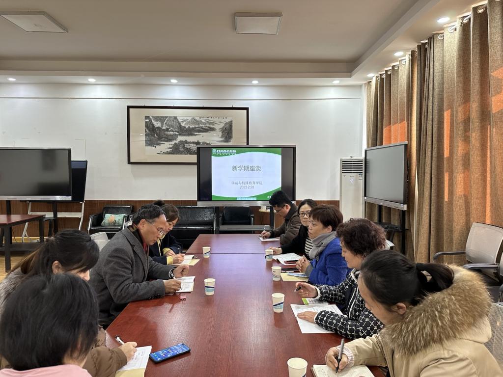 2月20日是我校新学期开学第一天,校长蔡飞到我院调研指导工作并开展座谈交流。教务处副处长李文静、304am永利集团党总支书记李春秋、院长王清风、副院长宋琛琛等参加座谈会。