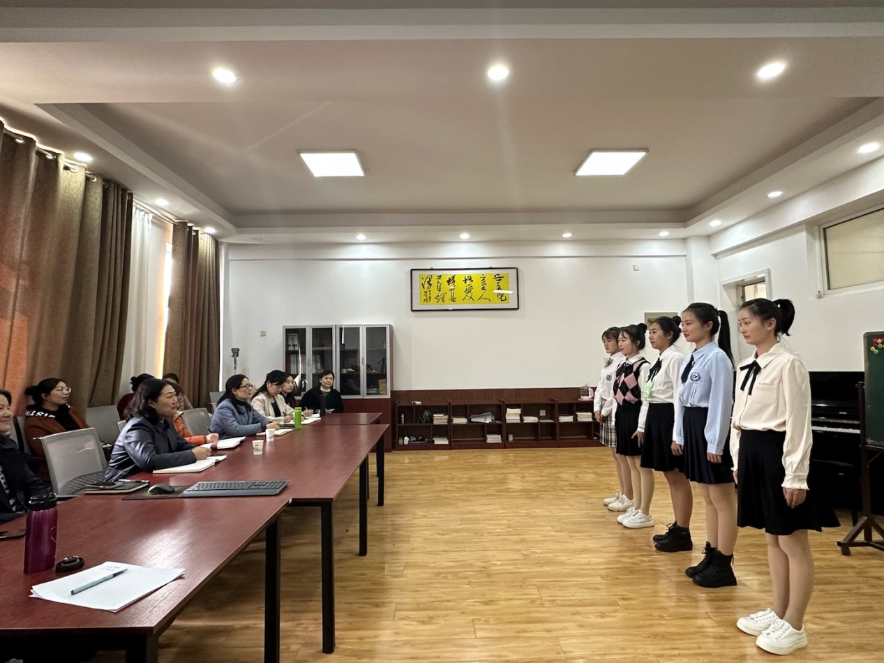参赛学生对片段教学、讲故事、舞蹈、弹唱四个环节进行现场模拟展示。王宁代表学校向学院辅导团队和参赛选手付出的艰辛努力表示肯定,同时也对赛前冲刺阶段提出更高要求。她指出,学校历来高度重视和关注基本功大赛工作,也在之前的大赛中取得了优异的成绩,为学校人才培养奠定了坚实的基础,希望选手们能抓住机会,刻苦训练,争取更大的突破。王宁勉励选手们要切实增强责任感,以高度的责任心投入到备赛工作中;要增强自信,拿出精气神,以最好的气势去参加比赛;要通过比赛,获取人生成长过程的宝贵经历,同时激励和影响身边的同学。