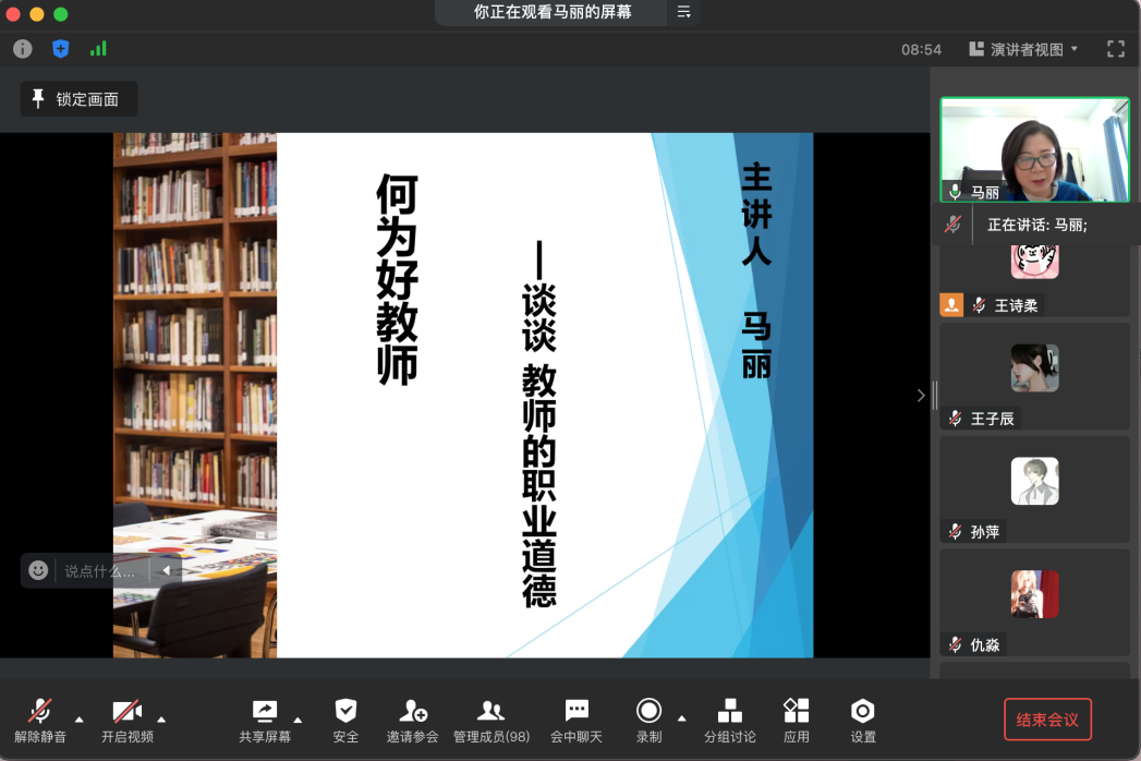 12月7日下午,我院马丽教授为2019级、2020级卓培项目学生开设“何为好教师”“谈谈教师的职业道德”专题讲座。本次活动由王诗柔老师主持。