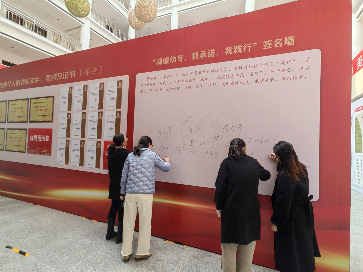 参观结束后,党员们纷纷在签名墙上签名,郑重承诺要进一步坚定理想信念,不忘初心、牢记使命,筑牢思想防线;不断加强学习,提高党性修养,从小事做起,时刻自重自省、慎独慎微,以更加昂扬的姿态全力推进学院各项工作高质量发展。