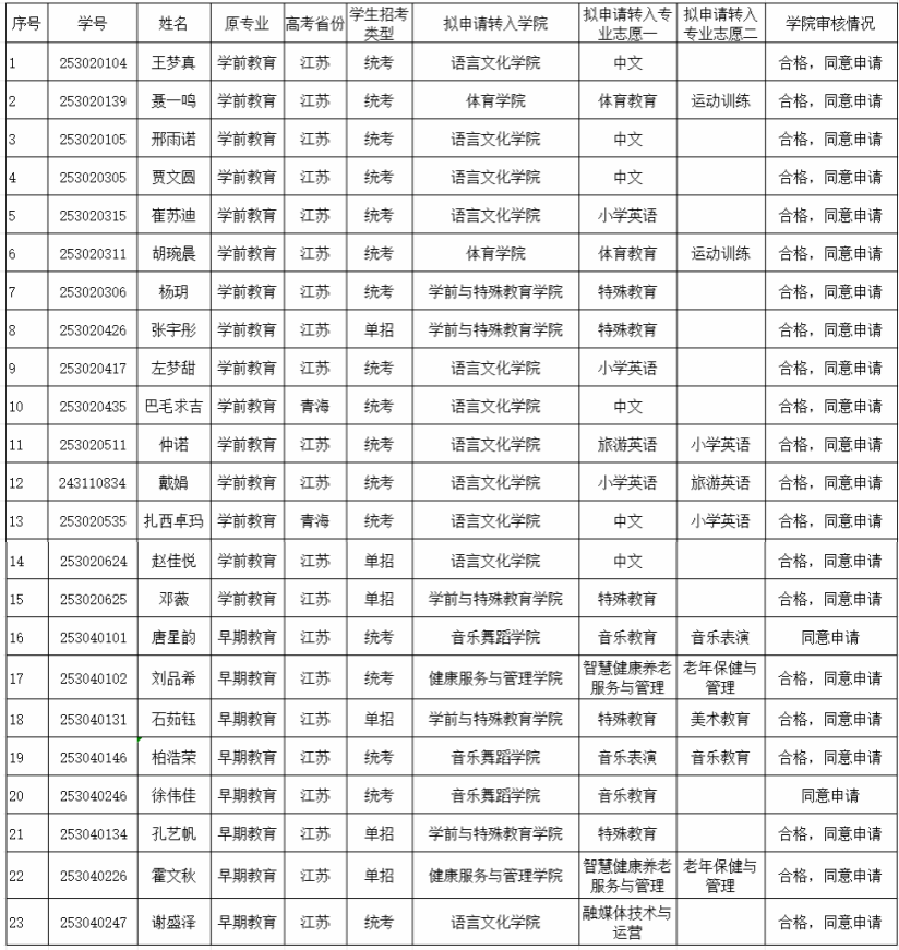 304am永利集团2025级学生转专业申请审核通过名单