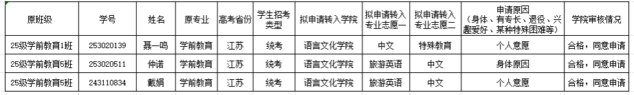 304am永利集团2025级学生转专业申请审核通过补充名单