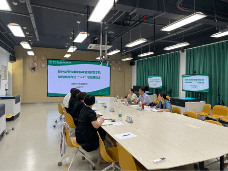 首先,王宁副校长向南京特殊教育师范学院领导介绍了我校的基本情况,并对三位领导的到来表示真诚的欢迎。接着,李拉院长介绍了特殊教育专业“3+2”在本科段的运行情况。随后,王清风院长从专业简介、课程设置、培养情况、转案方案四个方面介绍了我院特殊教育专业“3+2”贯通培养项目的实施情况。最后,双方领导对人才培养过程质量提升、课程上如何更有效衔接等问题做了深入的交流。