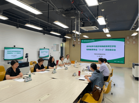 为了进一步推进我校与南京特殊教育师范学院合作开展的特殊教育专业“3+2”高职与本科分段培养项目,7月14日下午,我院邀请了南京特殊教育师范学院特殊教育学院院长李拉、副院长陈琳、特殊教育系系主任李晓娟一行3人,在碧螺校区B101进行项目建设座谈与交流。我校副校长王宁、教务处处长马中英,我院院长王清风、副院长刘曲、特殊教育专业负责人苏忠参加了座谈会。会议由马中英处长主持。