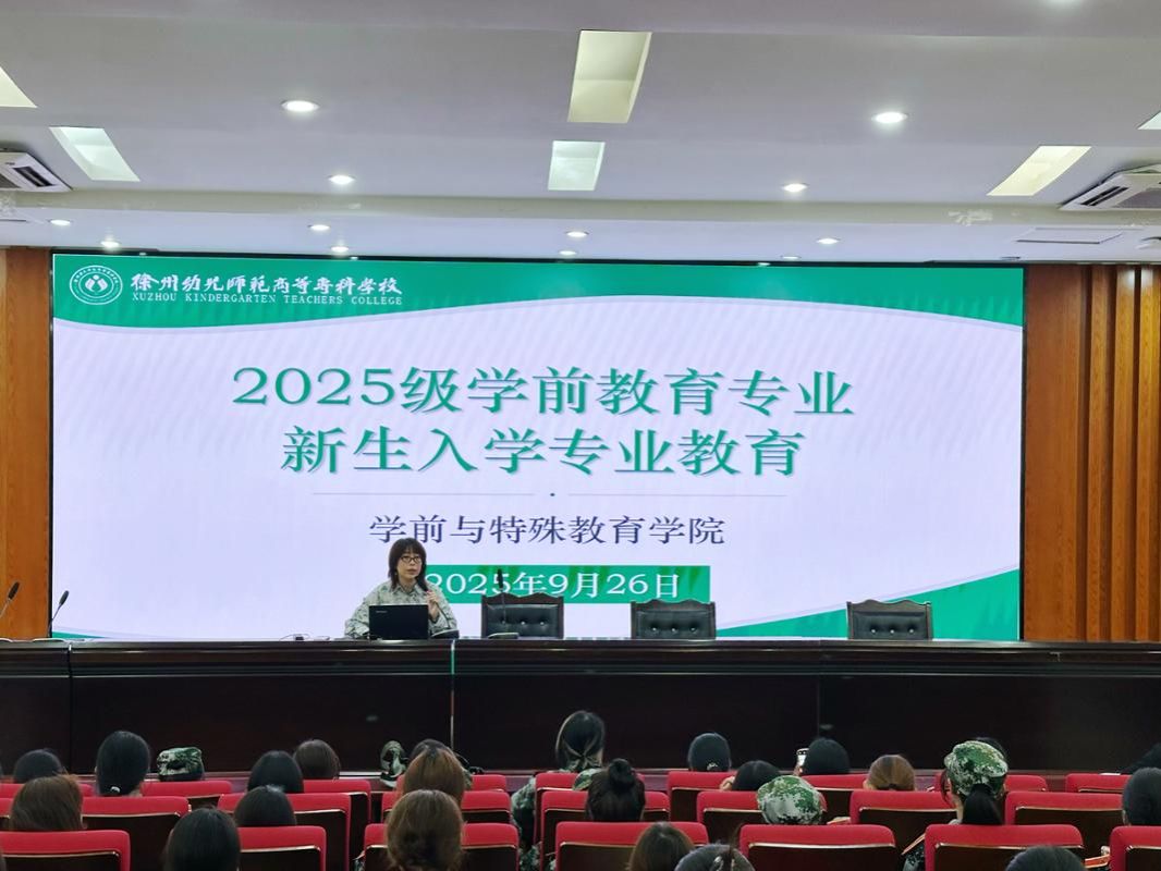 9月26日上午,我院在碧螺校区学术报告厅举行2025级学前教育专业新生入学专业教育活动。本次活动由儿童发展与教育教研室主任孟子郁主讲,副院长于涛、学前教育专业全体新生及班主任共同参加。