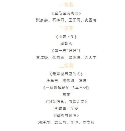 其中,获奖作品《金马庄交响曲》将代表我校出战由徐州市委宣传部、市委网信办、共青团徐州市委及徐州广电传媒集团联合主办的驻徐高校文明故事荟展演。这一成绩充分体现了我院在涵养青年文明素养、讲好身边文明故事方面的扎实成效。
