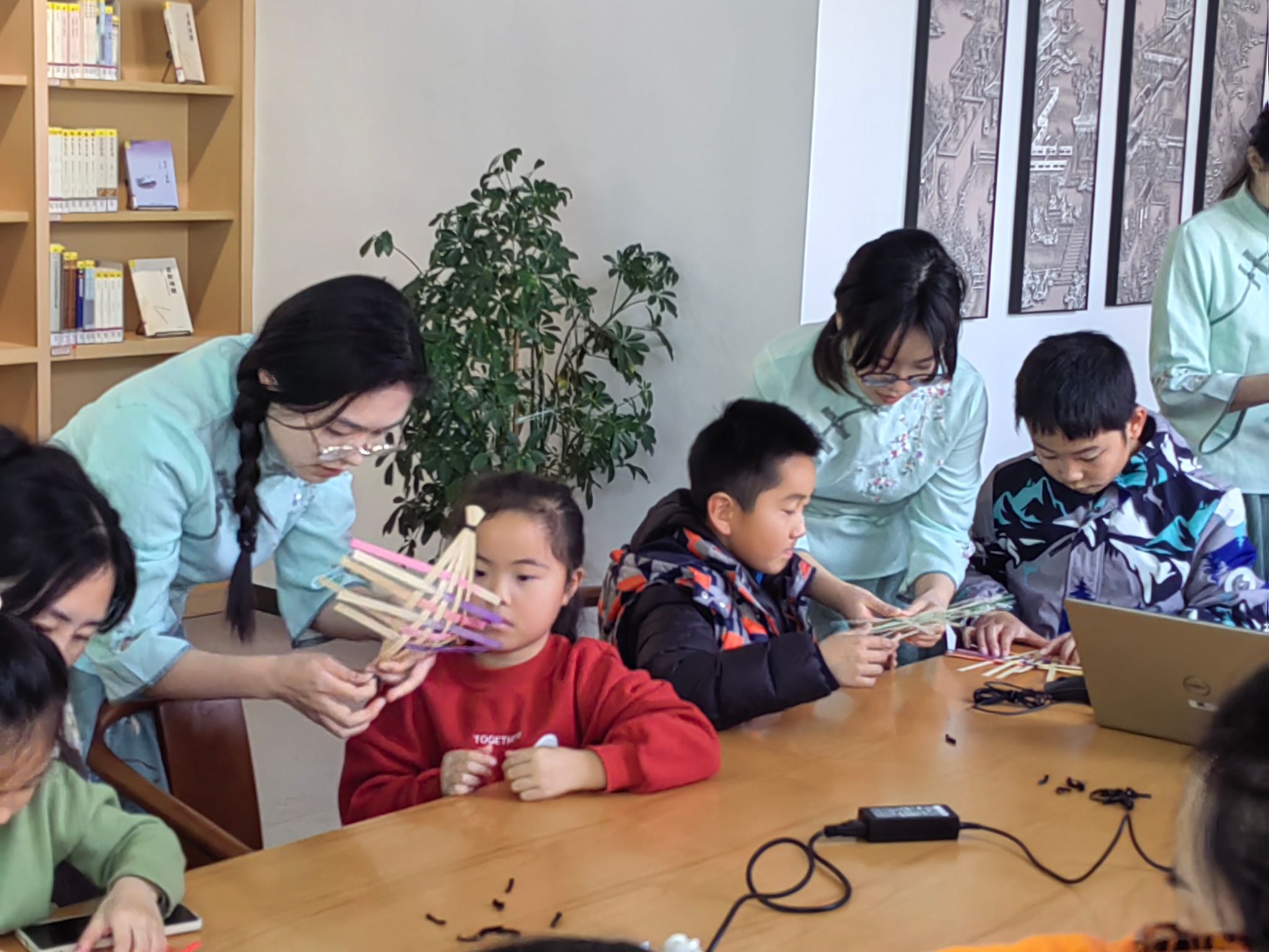 竹在中国传统文化中具有特殊的意义,其生而有节,虽清瘦却挺拔,风过不折,雨过不浊,象征着清廉正直、守律自律的品质。12月6日,雅卓女子学堂的学员们,在指导老师盖爽的带领下,来到徐州经济技术开发区图书馆,面向15个家庭开展了“以竹为舟传清廉 以廉为镜正己身”为主题的非遗竹编风铃活动。